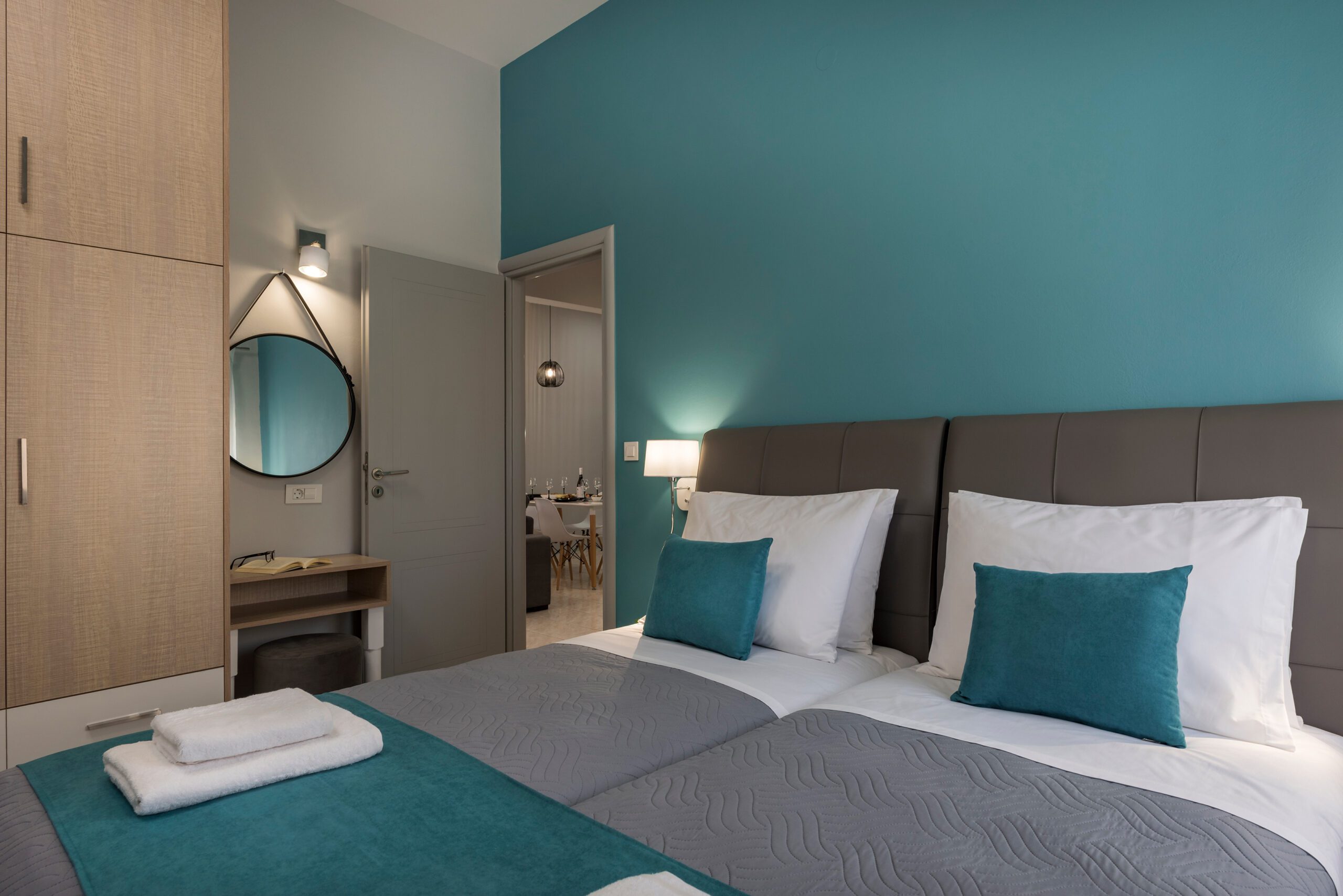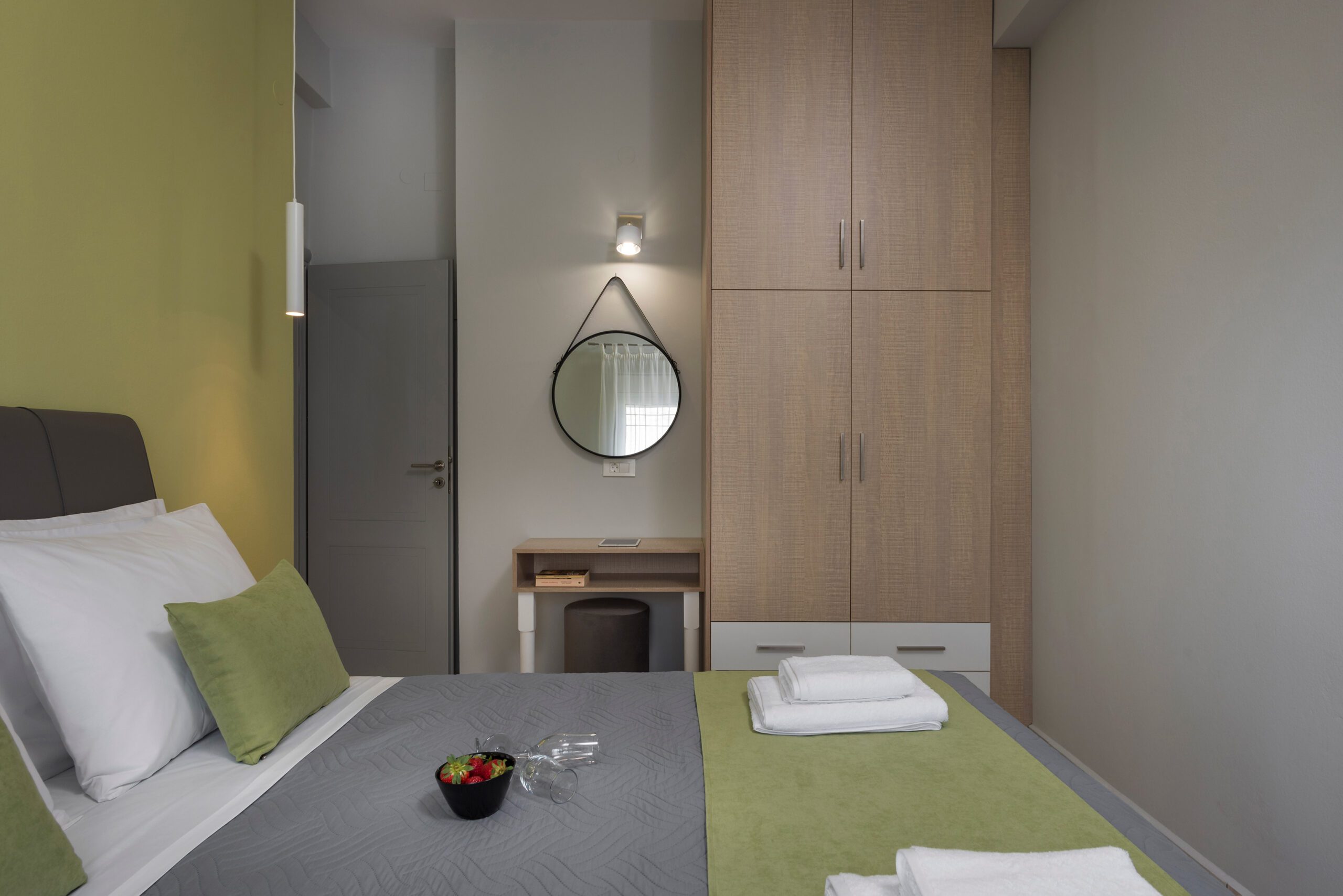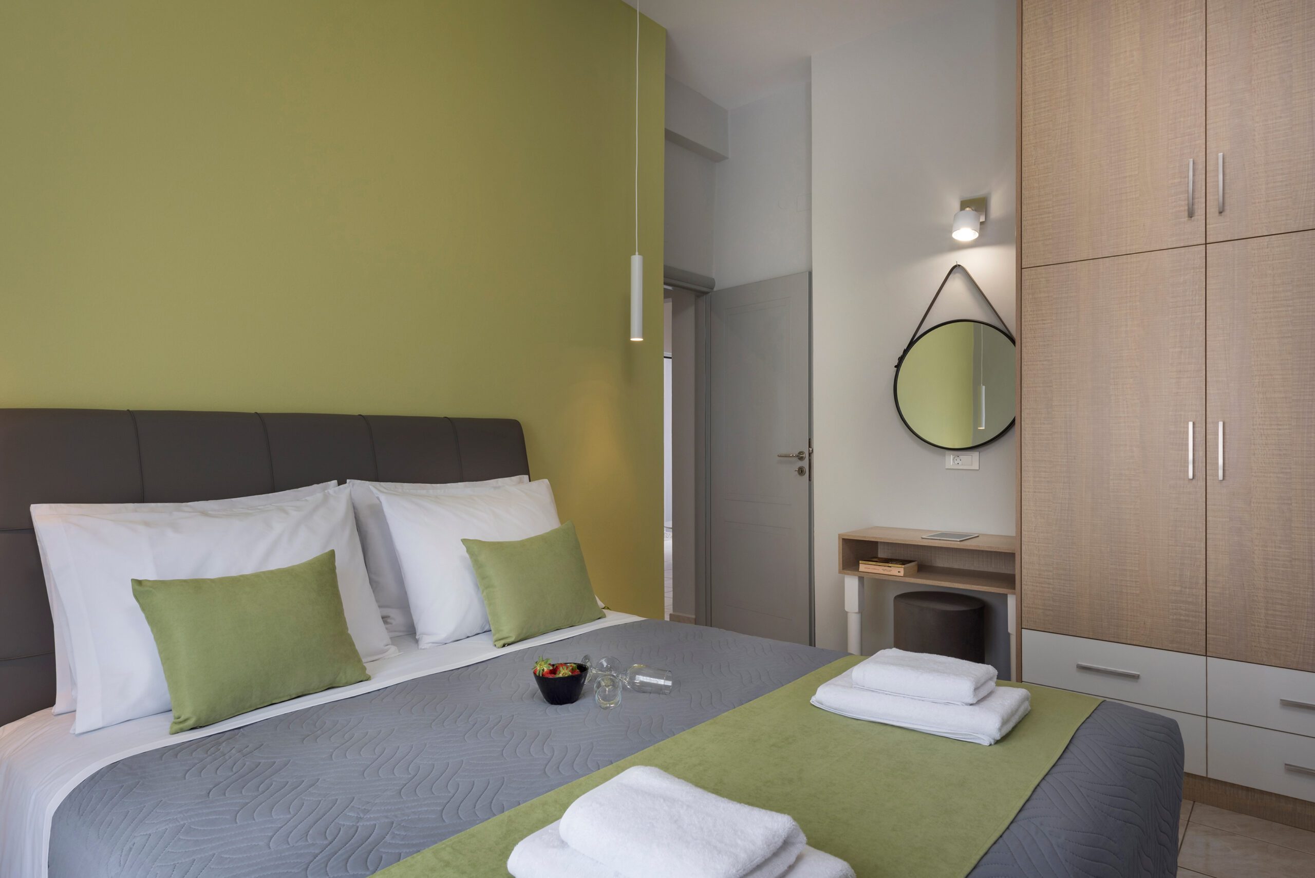 The apartment is located on the ground floor of the building and extends to 58 sqm. It can accommodate up to 6 people as it has 2 bedrooms, each equipped with a double bed, and two more people can sleep on a sofa bed if necessary. The bedroom has a wardrobe, bedside tables, TV, and air conditioning. The apartment has 1 bathroom. You will also find an open space area in the living room where there is a TV, and a fully equipped kitchen with all electrical appliances which will facilitate your stay such as oven, refrigerator, filter coffee maker, toaster, microwave etc. The open space has air conditioning. In the outdoor area, you will find a communal pool and pool towels as well as a shared patio. However, all apartments have private balconies.